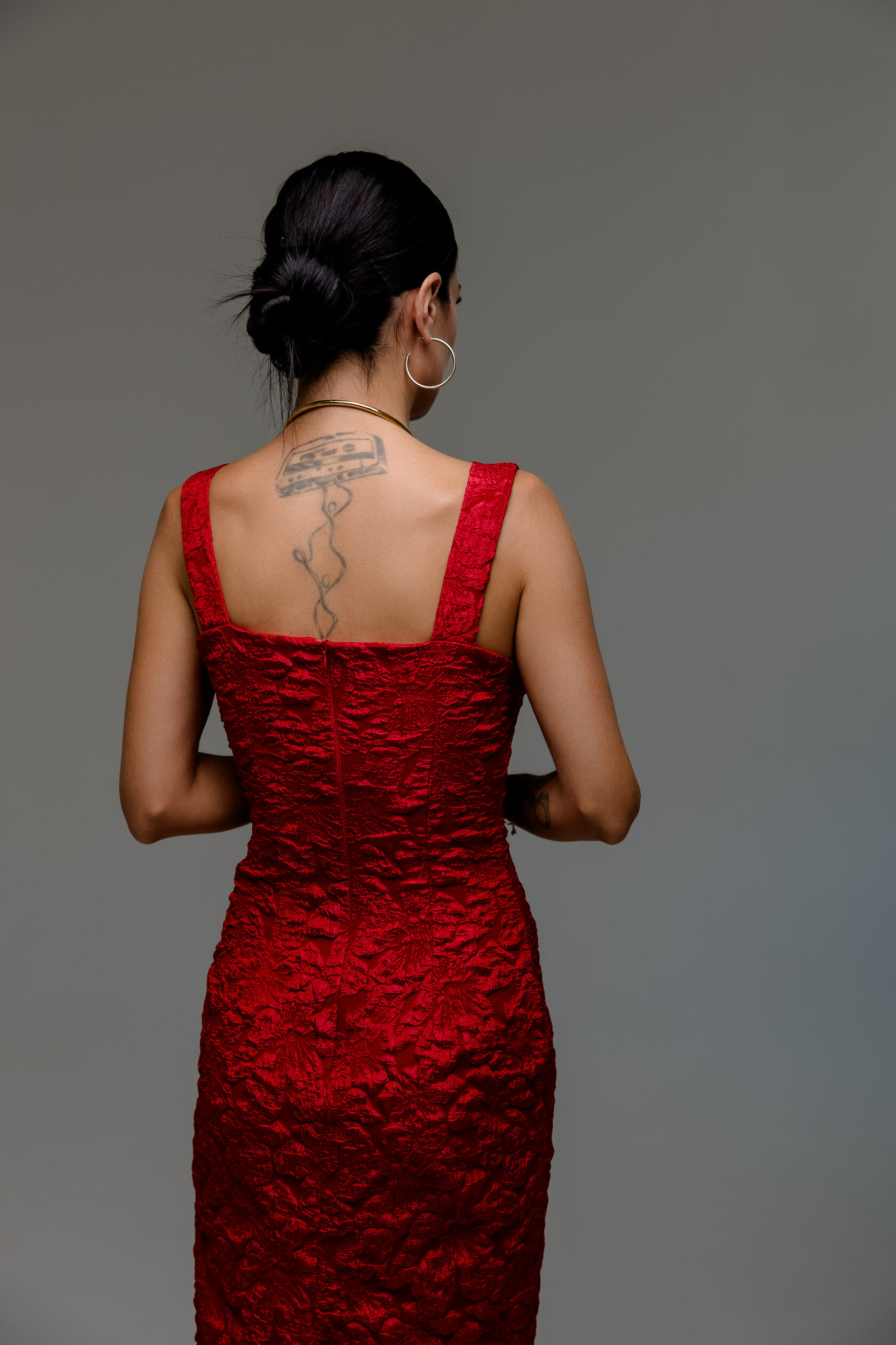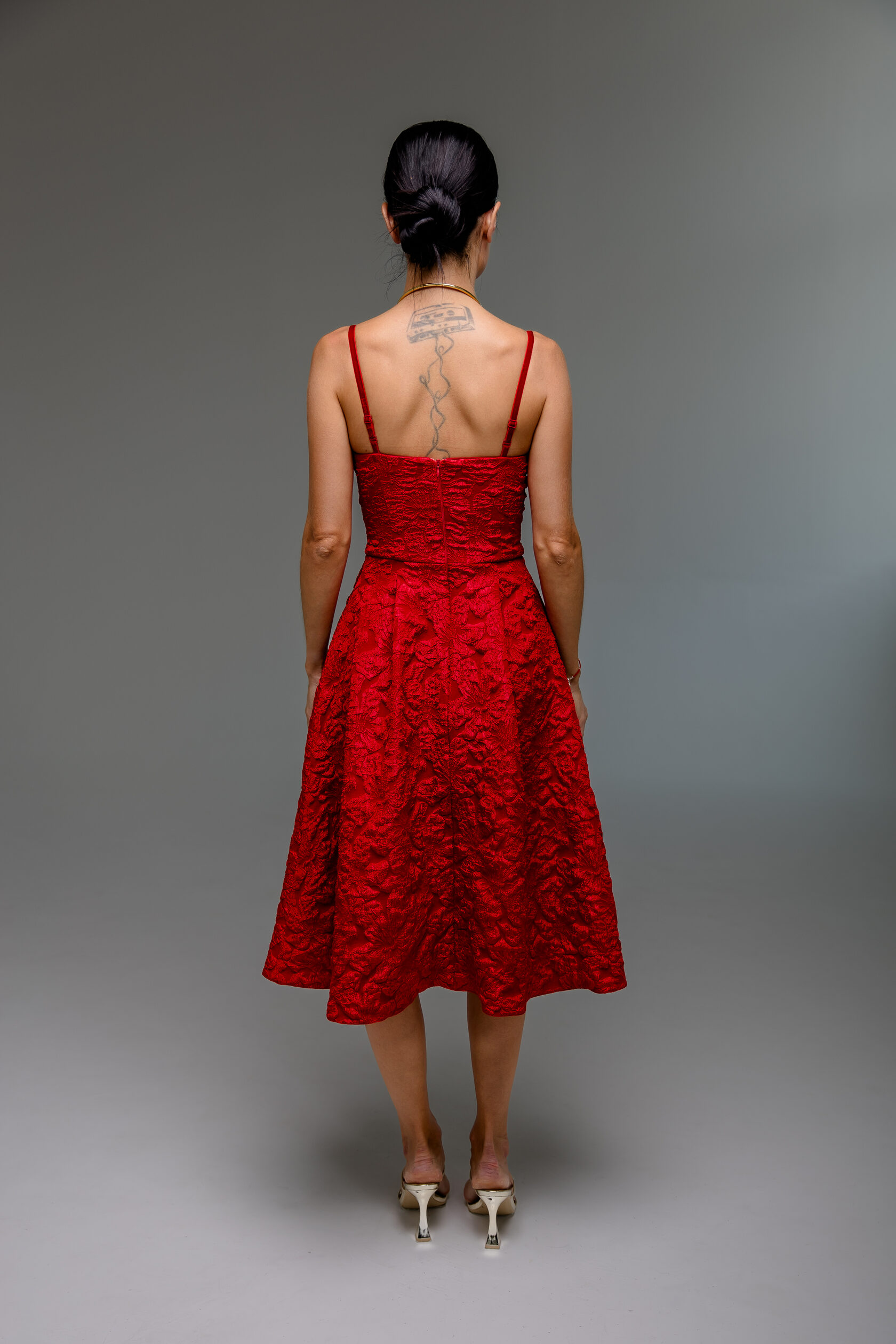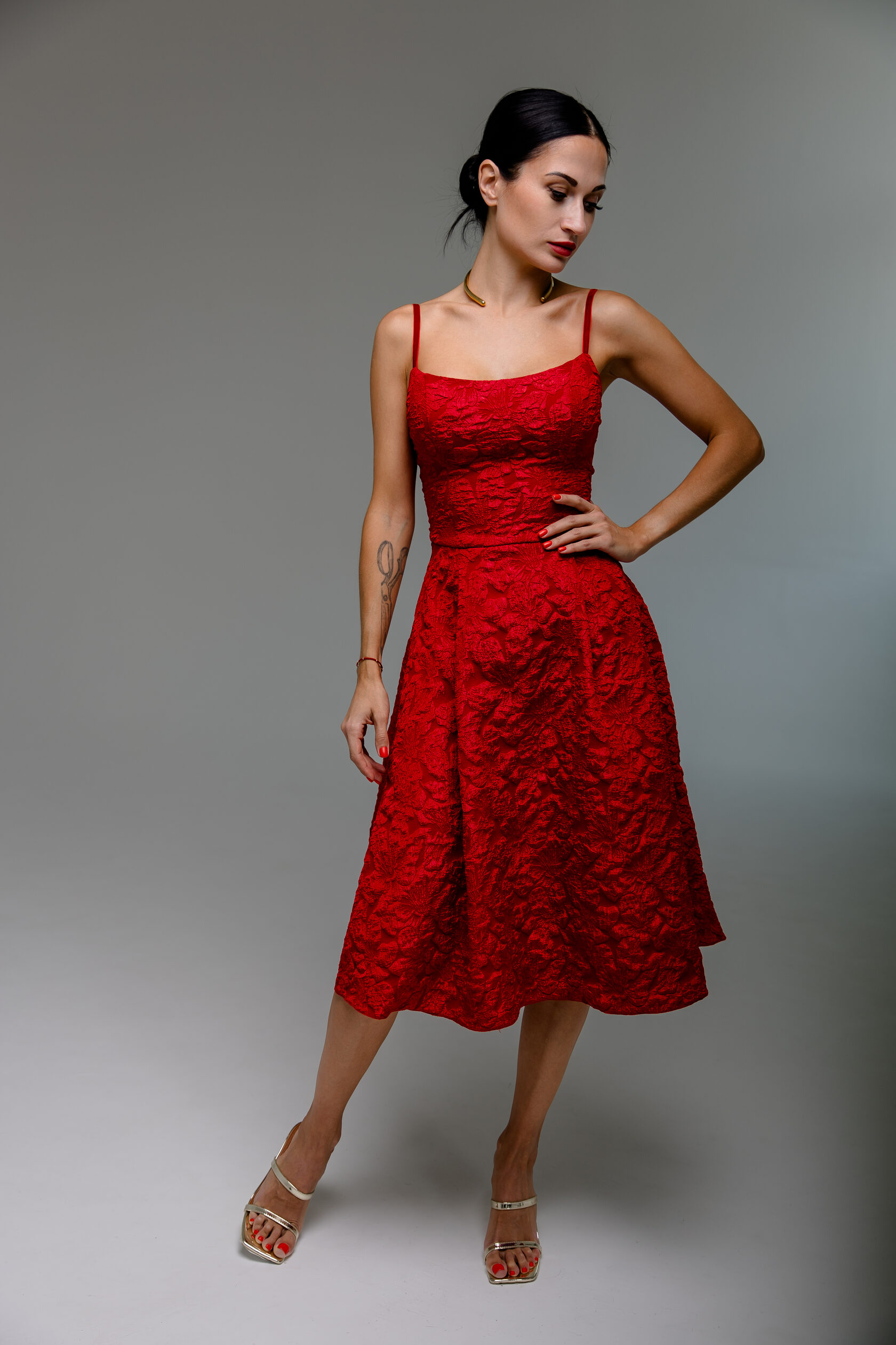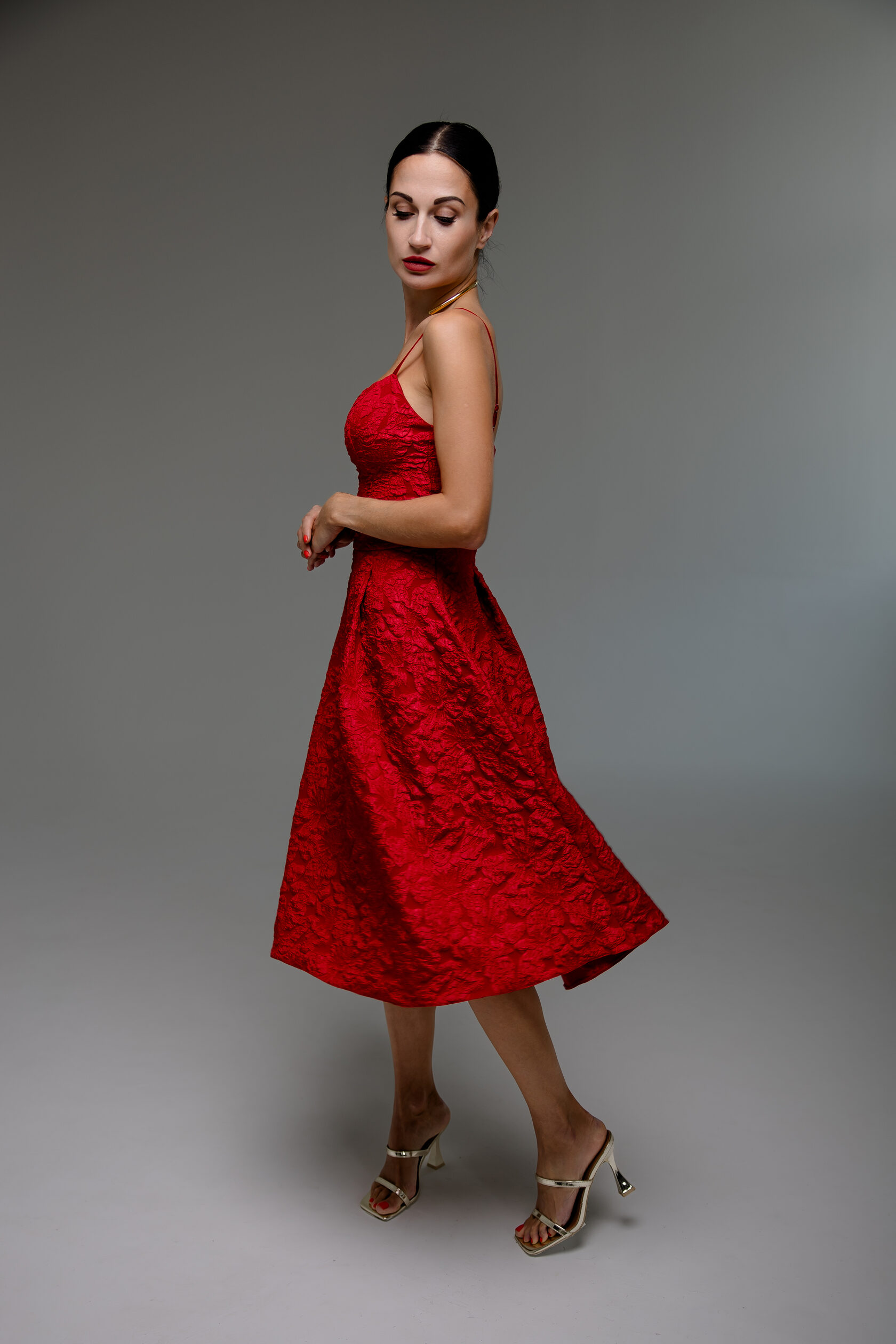 Коктейльное платье изготовлено из легкого материала с вискозой в составе, изделие идеально подходит для летнего сезона. Уникальная текстура и рельефный узор придают платью неповторимый шарм и элегантность. Бордовый цвет придает нарядному сарафану элегантность, делая его универсальным решением для различных случаев — от выпускного до вечерних выходов.Бретелькидобавляют нотку утонченности и делают модель еще более привлекательной. Такое праздничное решение легко сочетать с различными аксессуарами, что позволяет создать уникальный образ в зависимости от настроения. Носите его с каблуками или балетками — в любом случае вы будете выглядеть стильно и современно. Это платье обязательно привлечет восторженные взгляды и станет незаменимым элементом вашего гардероба на лето. Модель выполнена с открытыми плечами и регулируемыми бретелями, что обеспечивает идеальную посадку и комфорт. Оригинальный вырез придаёт изделию изысканности, а молния на спине добавляет практичности. Этот наряд деликатно облегает силуэт, акцентируя внимание на талии и создавая женственный и грациозный образ. С подкладкой, оно не просвечивает, что обеспечивает дополнительный комфорт во время длительных праздников. Подходит на свадьбу или выпускной, а также для подружек невесты и в день рождения. Будьте неотразимы на празднике с этим стильным и праздничным нарядом!